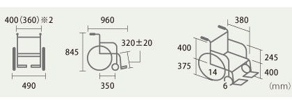 ※2 シート幅はアームパイプの内々の幅です。( )内は座シートの幅です。