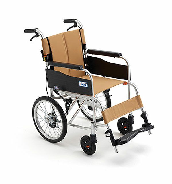 抗菌加工シートシート全面に抗菌加工を施しています。付着した菌を著しく減少させます。 介助ブレーキ(バンド式)を装備しています。 シートカラーはよごれが目立ちにくいイエローブラウンです。