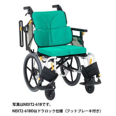 ネクストコア2 アジャスト NEXT2-61BDは、身体状況·使用状況に合わせて肘掛·座面・フットサポート調整機能で姿勢をサポートするモジュールタイプ介助用車椅子。ドラロック仕様(フットブレーキ付)。