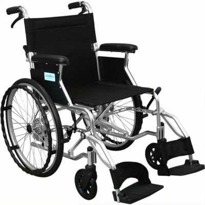 カラータイヤ  タイヤまでカラーにこだわりました。エアタイヤだから快適な乗り心地です。 | ドラム式制動ブレーキ  グリップまでカラーを統一。介助ブレーキは自転車と同じドラム式制動ブレーキです。 | フットサポート折りたたみ  フットサポートは折りたためるので、移乗の際にジャマになりません。 |