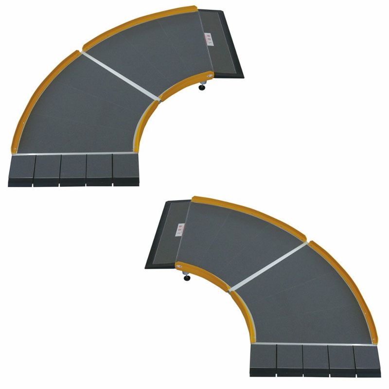 段差の向かいに壁などの障害物があることでスペースが狭く、車いす用スロープの設置できなかった場所に設置できるなど、省スペースでのスロープ設置が可能なカーブ型車いす用スロープです。対応段差は10~20cmです。